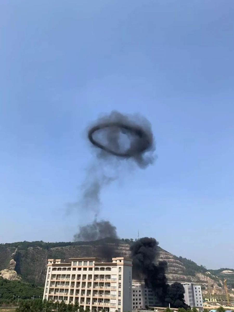 Sudden! An explosion at a chemical plant on the mountain! A black circle blew out of the sky!